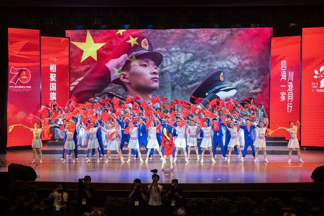 8月22日晚,bv伟德国际体育官方网站大剧场内灯光璀璨、歌声回荡,700余名香港青年与四川青年一道,以青春的名义共庆新中国七十华诞,共同拉开了“四海一家·川港同行”之“相聚国旗下”川港青年主题交流活动的帷幕。本次主题交流活动由四川省港澳办、共青团四川省委和香港新家园协会共同主办。