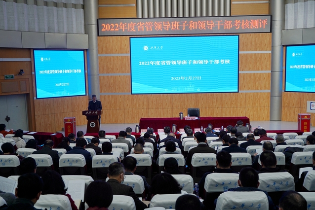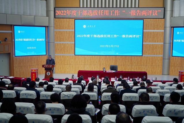 按照省委部署安排,2月27日下午,学校2022 年度省管领导班子和领导干部考核测评、2022年度干部选拔任用工作“一报告两评议” 大会在郫都校区四教报告厅举行。全体校领导,中层副职以上干部,职代会、教代会负责人,在校的省市以上党代表、人大代表、政协委员,民主党派在校负责人和正高级专业技术职务人员代表参会。校党委副书记、校长刘树根主持会议。