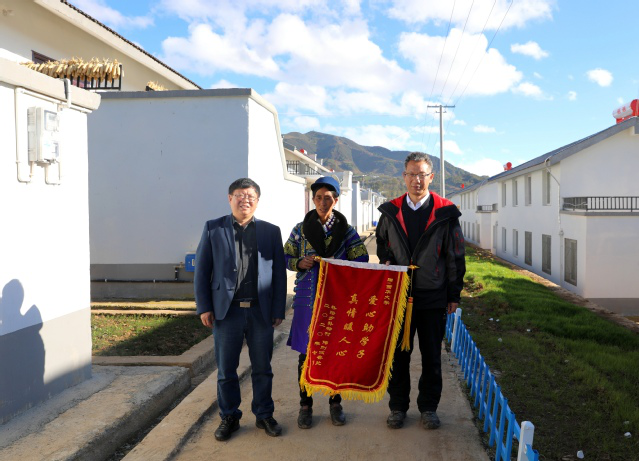 在补特村移民安置点,刘树根一行看望慰问了我校结对帮扶的建档立卡户伟则么各此、吉尔尔火等3户贫困户,为他们送上了全棉三件套、棉絮、食用油、大米等生活用品以及书包、铅笔盒、水彩笔、圆规套装等学习用品。刘树根详细了解贫困户家庭状况,生活、生产中存在的实际困难以及帮扶需求,鼓励他们树立脱贫信心和决心,通过自身努力积极发展生产,早日实现脱贫致富。贫困群众伟则么各此发自内心感谢学校的帮扶,向学校送上了锦旗。