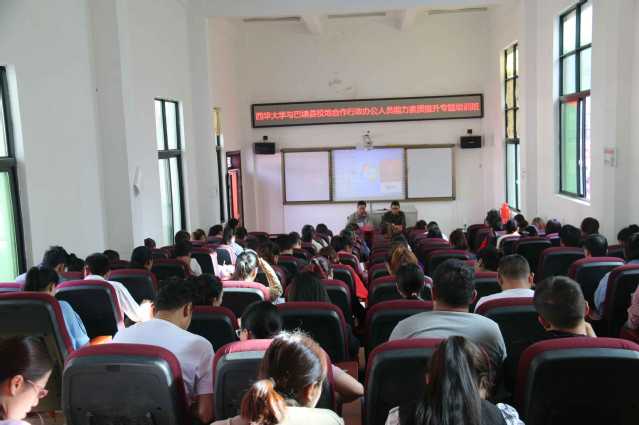 就在督导组走村入户督导调查的同时,6月21日上午,为加快巴塘青年干部培养,根据巴塘县需求,由bv伟德国际体育官方网站牵头,在巴塘县委党校举办了bv伟德国际体育官方网站与巴塘县校地合作干部人才能力素质提升专题培训班,我校人文学院武小军教授作了专题辅导,县级机关各办公室分管领导、工作人员,各片区工委、乡(镇)文秘人员共计100余人参训。武小军教授精心准备,讲解深入浅出,以渊博的学识引领学员们走出公文写作的种种认识误区,并结合教学布置针对性练习,做到“缺什么,补什么;怕什么,练什么”,学员普遍反映对公文写作方面专业知识有了再认识。此次“送训进巴•文秘培训班”,为巴塘青年干部进一步掌握专业知识、提升岗位能力搭建了良好平台。