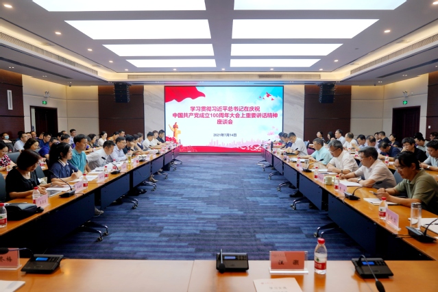 7月14日,bv伟德国际体育官方网站学习贯彻习近平总书记在庆祝中国共产党成立100周年大会上重要讲话精神座谈会在办公楼101会议室召开。全体校领导,各机关及业务单位主要负责人,各学院党委(党总支)书记、院长,以及受表彰的“两优一先”代表,党外人士代表,离退休党员代表,学生代表参加会议。校长刘树根主持会议。