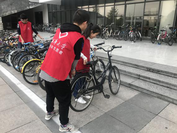 规整自行车现场