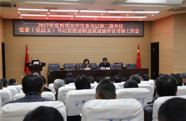 1月4日上午,学校在行政楼一楼报告厅召开2017年度党委书记和二级单位党委(党总支)书记党建述职述责述廉评议考核工作会。校领导,校党委委员、校纪委委员,二级单位党委(党总支)书记、副书记,党群部门副处级及以上领导干部,党群部门科级干部代表、教代会(职代会)代表、党支部书记代表、教师党员代表、学生党员代表等参加会议。校党委副书记、校长刘清友主持会议。