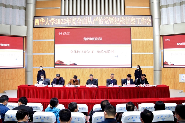 4月15日,我校在四教报告厅召开2022年全面从严治党暨纪检监察工作会议,深入学习贯彻习近平新时代中国特色社会主义思想,传达学习上级有关会议精神,回顾总结全面从严治党和纪检监察工作,安排部署2022年全面从严治党工作。