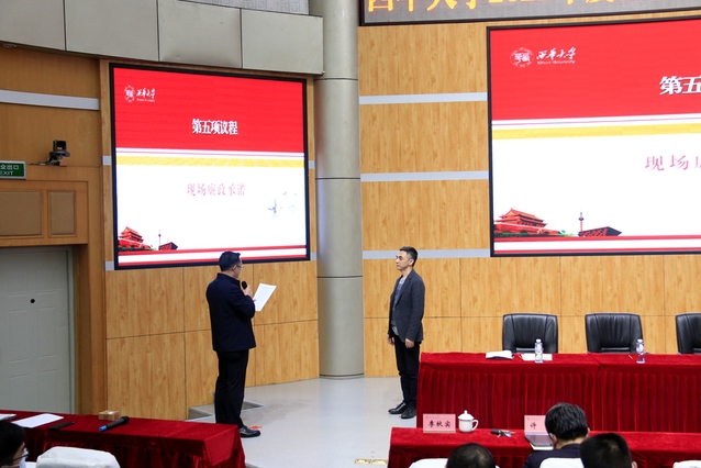科学技术与人文社科处处长郎方年向副校长李秋实作现场承诺