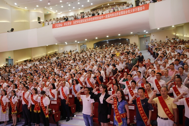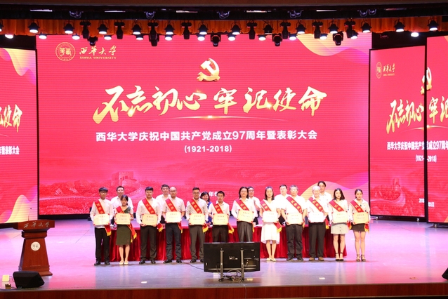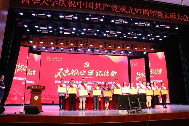 6月26日下午,学校在艺术大楼大剧场召开庆祝中国共产党成立97周年暨表彰大会,对30个先进基层党组织、43名优秀共产党员、50名优秀党务工作者(含9名“我身边的好书记”)进行表彰,并开展了新党员入党宣誓和老党员重温入党誓词活动。