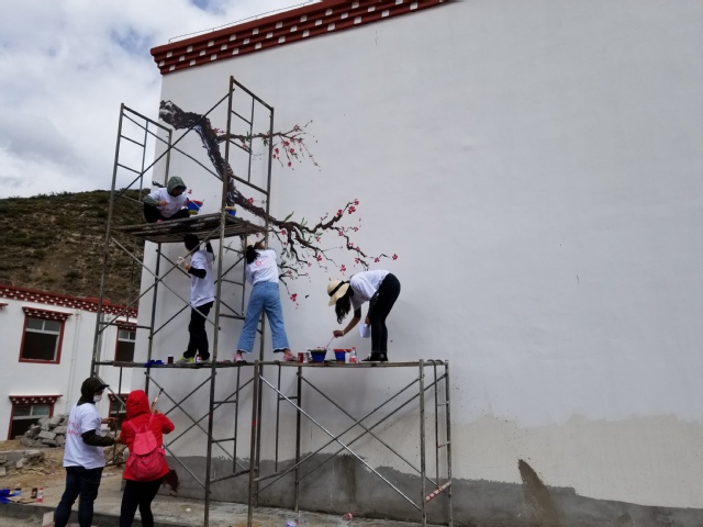 查看甲英乡桃蹊安置点墙体彩绘现场