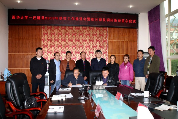 10月13日,在巴塘县会展中心二楼会议室举行了bv伟德国际体育官方网站——巴塘县2018年帮扶工作推进会暨相关帮扶项目签字仪式。会上,巴塘县副县长李超对bv伟德国际体育官方网站一直以来的倾力帮扶表示衷心感谢,随后,他对巴塘县教育现状进行介绍。巴塘县脱贫攻坚办公室副主任郭茜对巴塘县县情、脱贫攻坚推进以及脱贫攻坚工作中存在的问题等情况进行汇报。汇报中特别感谢学校在旅游规划编制、干部培训、墙体彩绘等方面给予的帮助和支持。