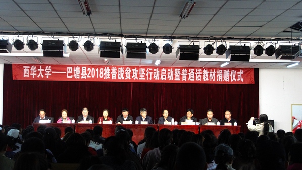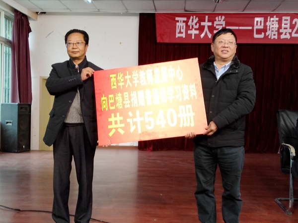 10月12日上午,在巴塘县康南中学大会堂,召开了“bv伟德国际体育官方网站——巴塘县推普脱贫攻坚活动启动仪式”。巴塘县副县长李超、校党委副书记王小林分别代表巴塘县和bv伟德国际体育官方网站作了讲话。副校长刘小兵代表bv伟德国际体育官方网站向巴塘县参培人员捐赠了由bv伟德国际体育官方网站教师发展中心采购的540册普通话及旅游服务礼仪培训资料,以帮助参培人员提高普通话交流能力,促进贫困地区普通话普及率提高。