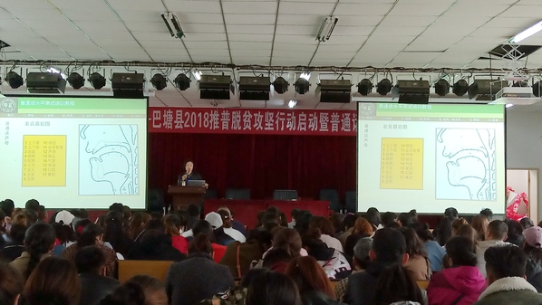 人文学院樊洁老师围绕教师普通话水平等级测试考前准备工作,从普通话声母、韵母、声调、音变等基础内容和普通话水平测试应试技巧两个方面进行了培训,为即将举行的巴塘县普通话水平测试做好充分准备。