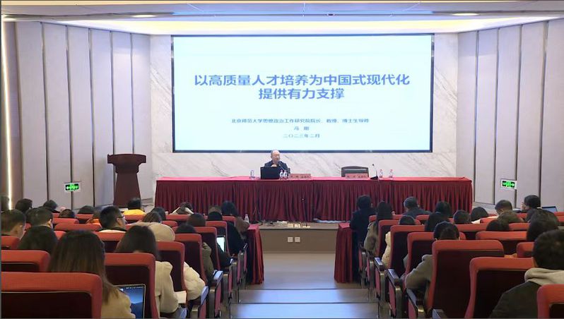 为深入学习贯彻党的二十大精神,进一步加强和改进我校思想政治工作,推进辅导员队伍专业化职业化建设,学校2023年度辅导员培训第一讲如期开讲。北京师范大学思想政治工作研究院院长冯刚教授应邀作了题为“以高质量人才培养为中国式现代化提供有力支撑”的专题讲座。培训会由校党委副书记张力主持。
