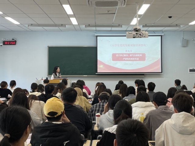 据悉,2023年春季学期发展对象培训班采取“网络自学+课堂教学+实践教学”模式进行,培训期间,除集中授课的6个学时外,参训学员还将完成在线自学16个学时,社会实践2个学时。通过线上线下相结合、理论与实践相结合,有助于加强党章再学习、思想再锤炼、素养再提升,严把发展党员“入口关”“质量关”,帮助参训学员深刻领悟“两个确立”,做到“两个维护”,时刻以党员标准要求自己,发挥先锋模范作用,以实际行动争取早日入党。(来源:组织部(党校),供图:郫都、宜宾校区)